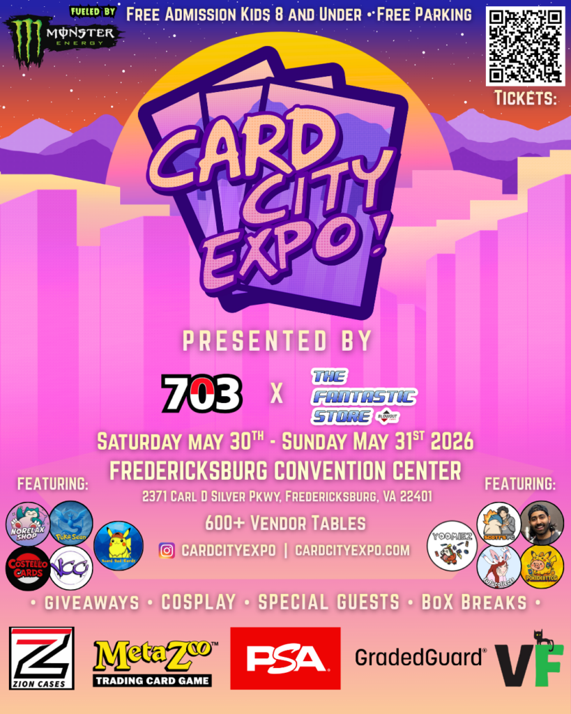 703 Events is a family-owned collective bringing the best TCG experiences to the DMV. We host card shows, TCG events, and bring together good people who love the hobby. We’ve built something special for families and collectors of all levels to enjoy — follow @703collectors on socials and experience a 703 quality event yourself!